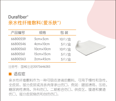 • 产品名称:亲水性纤维敷料(爱乐肤)