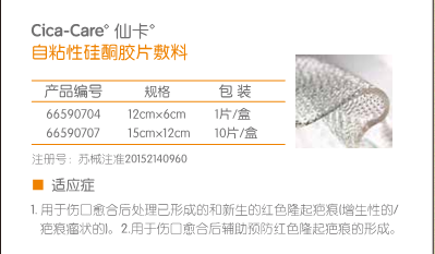 • 产品名称:自粘性硅酮胶片敷料