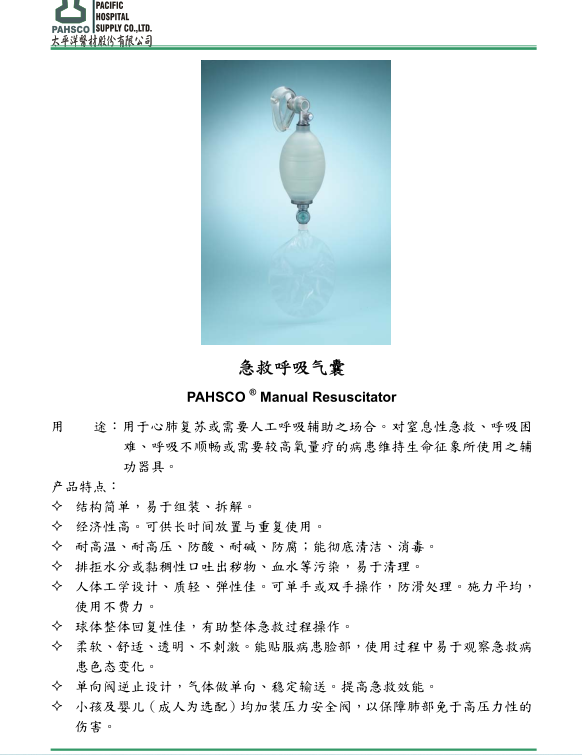 • 产品名称:急救呼吸球囊