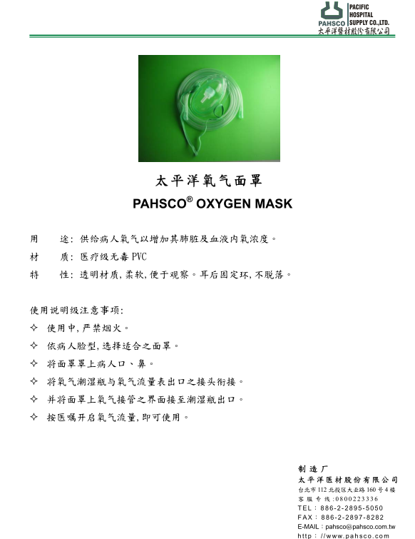 • 产品名称:氧气面罩